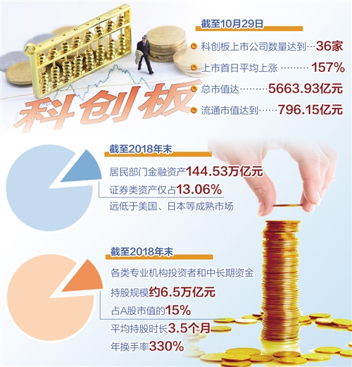 自7月22日正式开市到10月29日,科创板开市已满百日。截至10月29日,科创板上市公司数量达到36家,上市首日平均上涨157%,总市值达5663.93亿元,流通市值达到796.15亿元,“科创”底色鲜明。