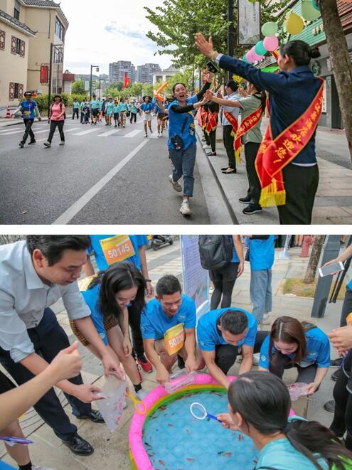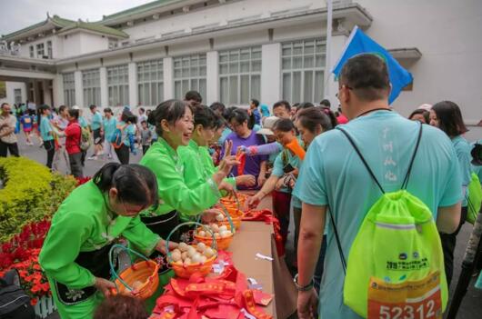 据介绍,中国山地马拉松系列赛广州从化站是广州地区规模最大的山地户外体育赛事。活动主办方在群众组赛道沿线20多家旅游企业安排了温泉欢乐嘉年华活动,包括水上狂欢派对、泡泡马拉松、音乐加油站、浪漫邂逅等,200位来自温泉酒店、旅行社、体育协会的温泉爱好者快乐集结,与其他市民游客一起融入狂欢派对嘉年华中,时而欣赏泼墨,时而体验捉鱼,学几招太极气功,玩一下炫酷平衡车,与少数民族共舞,和欢乐玩家击掌,PK水上街舞,来场浪漫的邂逅,最后回归质朴唱唱山歌剥个喜蛋,许下心愿!大家在风景靓丽赛道上给参赛者加油互动,摄影师纷纷通过镜头拍下气氛热烈的瞬间。主办方在起跑点马拉松龙头队伍位置布置“跑进新时代,开启新征程”以及“不忘初心,牢记使命”横幅,突显从化温泉红色传承地的底色。