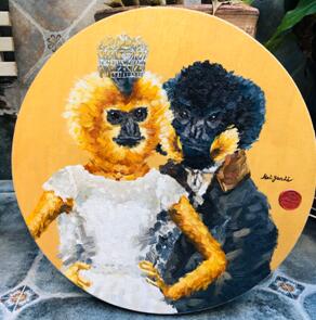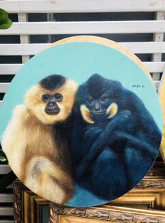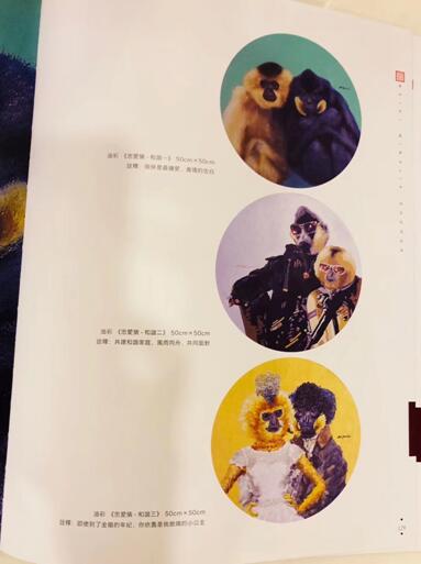 近年来,除了书法创作频出精品,李美妍的油画题材集中描绘了一种可爱的濒危动物---黑冠长臂猿,这种可爱的小精灵目前全球只余20余只。李美妍有感于黑冠长臂猿夫妻之间的那份不离不弃的相守之道,于是特别创作了“忠爱猿”的系列艺术作品,并于2018年在香港展出,展品包括四幅书法作品以及三幅油画作品。李美妍女士用心血和才情创作“忠爱猿”系列作品,旨在呼吁全社会关注保护濒危动物,同时也向世人传达一种忠贞不渝的婚姻观。她用自己的作品,使世人相信真爱无敌,崇尚忠诚至上,秉持每个人爱情、婚姻中那一份不离不弃的忠诚,