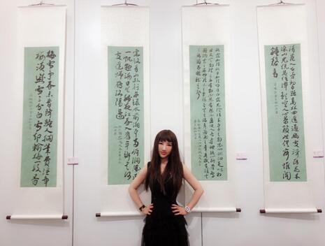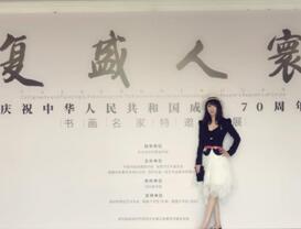 (以下图片为跨界艺术家、书法家李美妍在“中华人民共和国成立70周年-复盛人寰”书画名家特邀联展上)