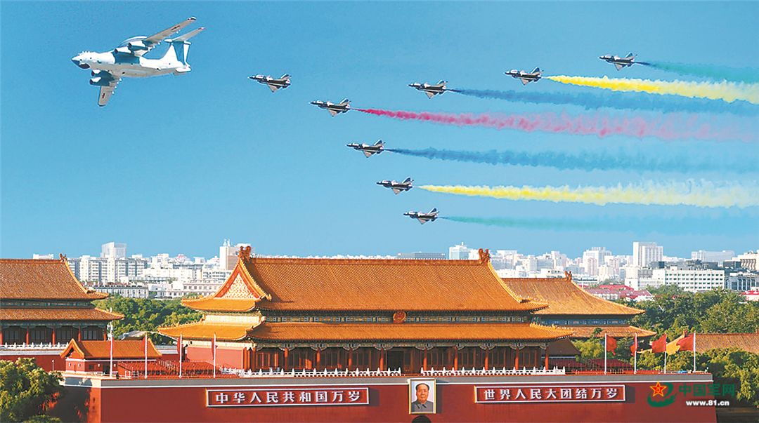 2019年10月1日,庆祝中华人民共和国成立70周年阅兵,人民空军多型国产战机列阵长空,接受党和人民检阅,昭示着建设一支强大的现代化人民空军迈出新步伐。