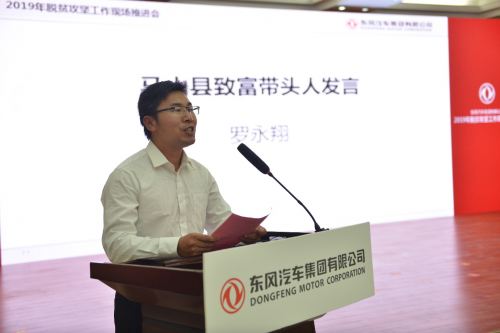 “千言万语,说不尽对东风公司的感恩,都将化为今后我的自觉行动。作为一名致富带头人,我绝不辜负党和国家的厚爱和支持,我将不忘农心、牢记使命,乘着东风,在希望的田野上绽放芳华,做大做强做优马山的沃柑产业,带领更多的群众摆脱贫困、迈入小康的生活!”罗永翔说道。