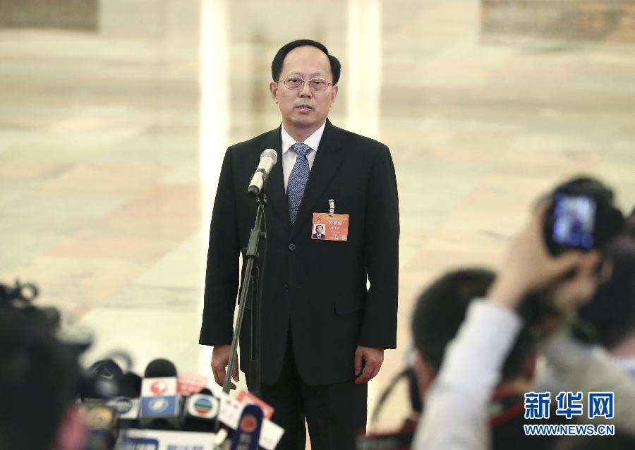 3月8日,十三届全国人大二次会议在北京人民大会堂举行第二次全体会议。这是国家体育总局局长苟仲文在“部长通道”接受采访。新华社记者 金立旺 摄