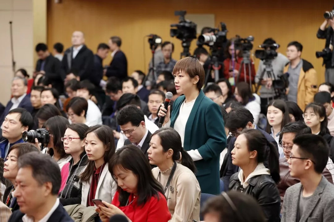 3月11日,新闻中心记者会上,记者在提问。新华社记者沈伯韩摄
