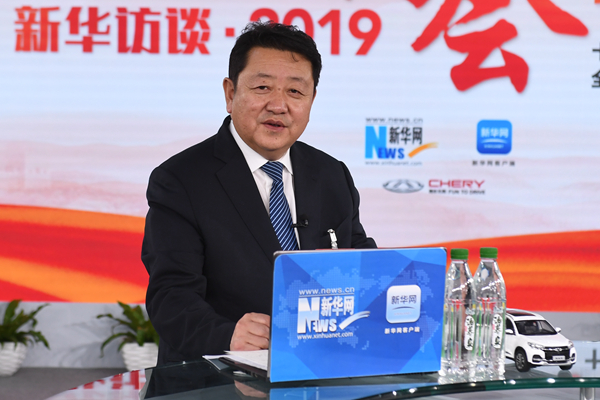 3月12日,全国人大代表、内蒙古自治区呼和浩特市委副书记、市长冯玉臻做客新华网。新华网 李相博 摄