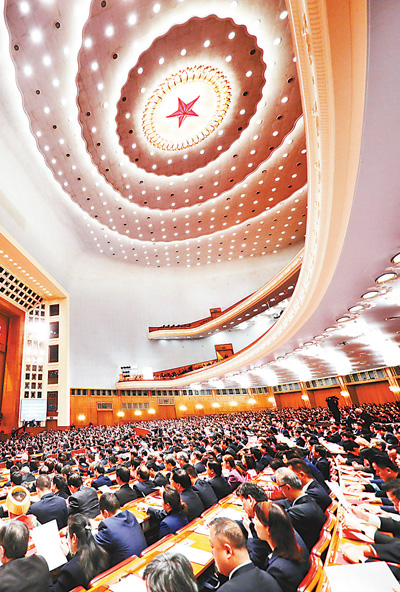 3月15日,人民大会堂会场。 本报记者 李 舸摄