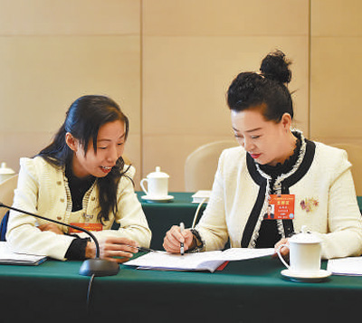 3月6日,代表们进行讨论。 本报记者 贺 勇摄