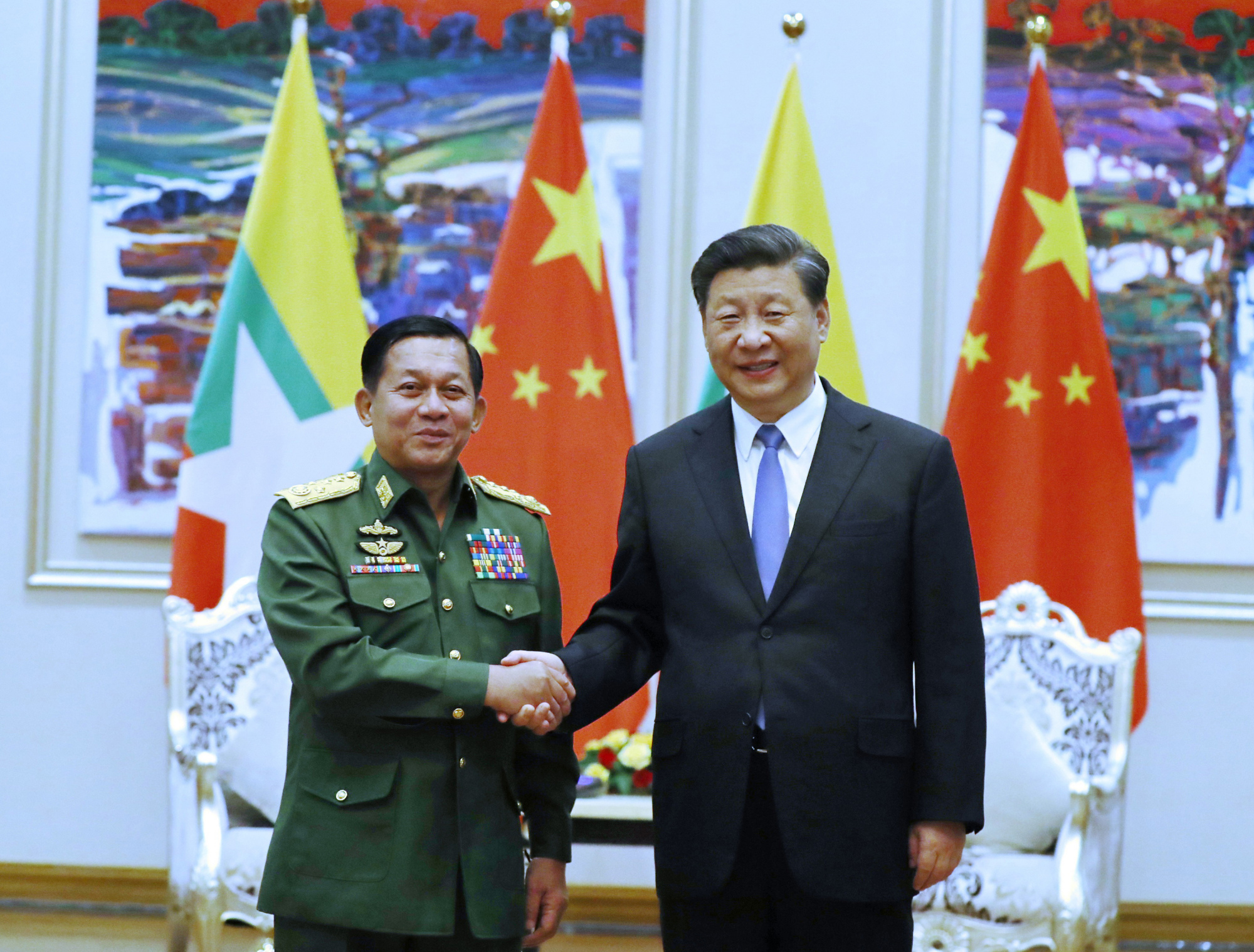 习近平指出,我这次访问是中国国家主席时隔19年再次对缅甸进行国事访问,也是我新年伊始首次出访,体现了当前中缅关系的高水平。中缅建交70年来,无论两国各自有何变化,双边关系有何波澜,最终都走上了紧密合作、相互支持的正确轨道。双方一定要维护好、发展好难能可贵的胞波情谊,推动“一带一路”框架内务实合作早出成果,惠及人民。发展中缅关系要靠两国各界人民协力合作,也离不开两军交流合作。希望总司令和缅甸军方同中国军方加强往来,共同推动中缅命运共同体建设。双方要共同努力,维护边境地区和平稳定,为促进边境地区经济发展创造良好条件。