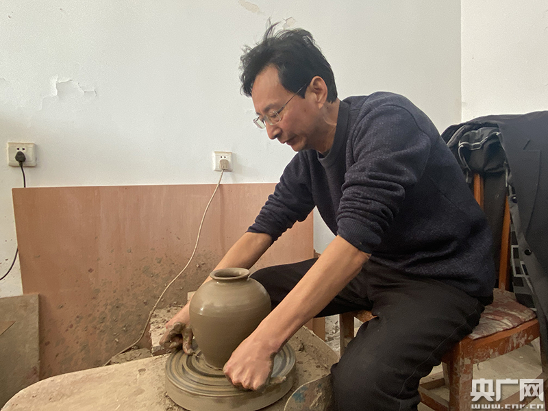 陶艺大师韩克胜(央广网记者 褚夫晴 摄)
