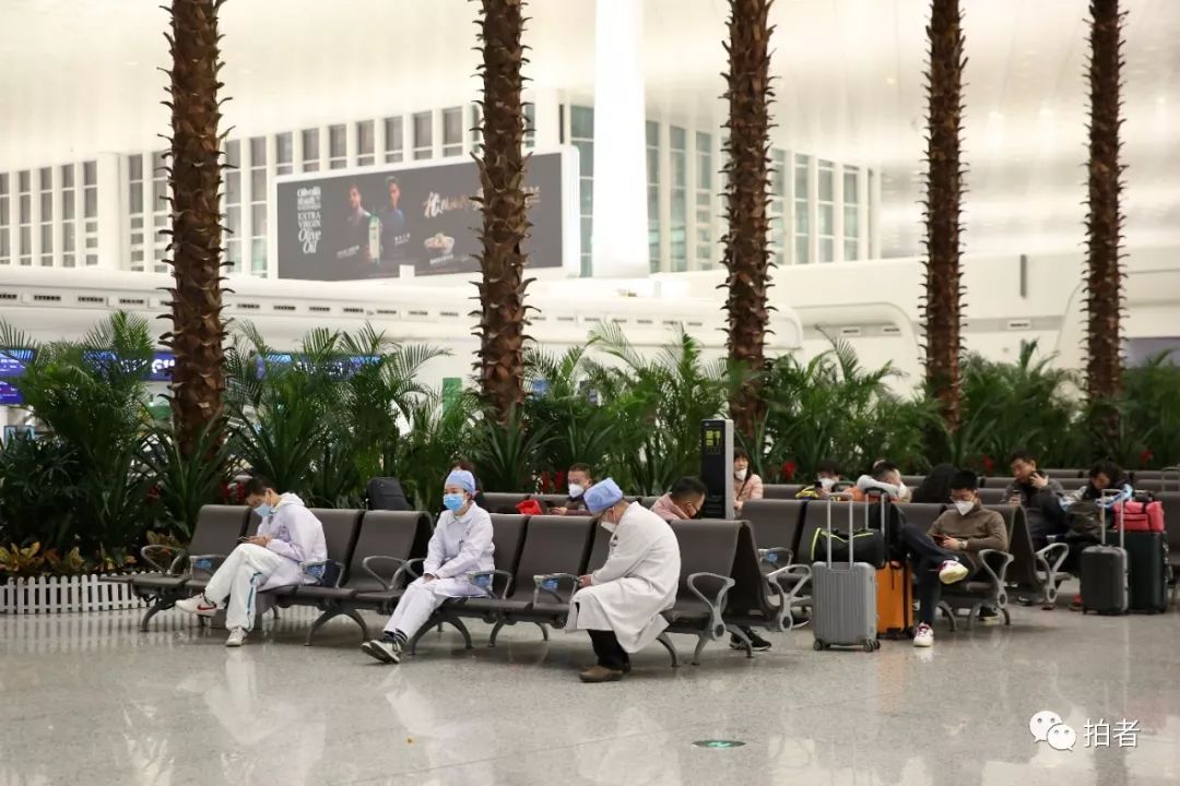 1月23日,武汉天河国际机场,候机厅内配有医务人员。