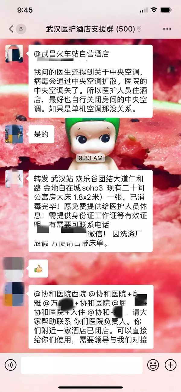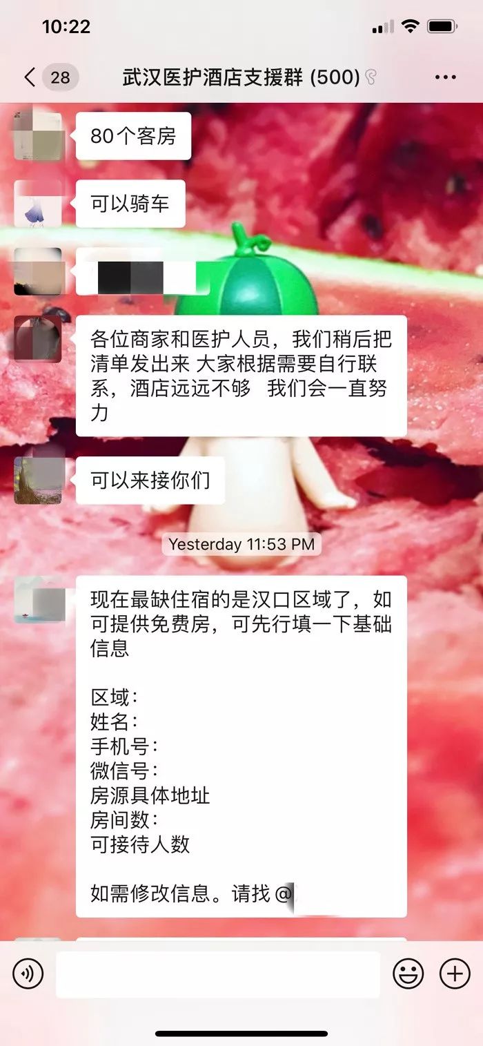 随着疫情的升级,武汉的医护人员几近透支精力和体力。为了支援武汉的一线医护人员,1月24日,当地的酒店业人士自发组织“武汉医护酒店支援群”,征集不带中央空调的酒店,自愿为武汉地区各大医院的一线医护人员免费提供住宿。