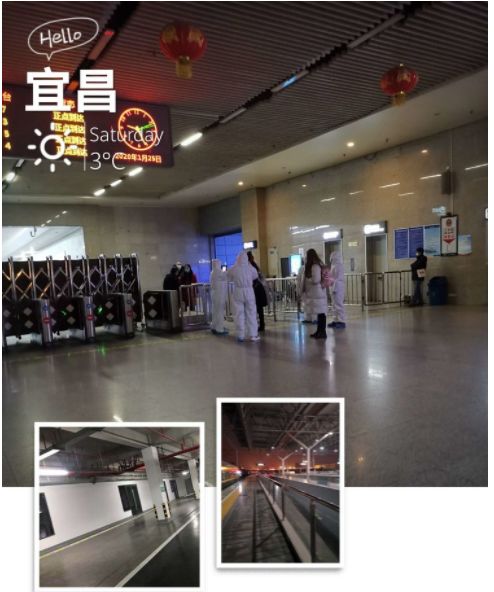我们拖着行李,每个站台转了一遍,一遍又一遍的去问乘务员,今天能到宜昌吗,他们都不敢肯定。后来,我们找到了副列车长,告诉他,我是医务工作者要回去上班,他说我可以到东站。热心的列车长给我开辟了一条爱心通道,让我慢点不要慌,还给我敬礼,并向我致敬。我说,谢谢,您也辛苦了!