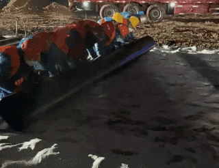 △ 三局建设者通宵铺设“两布一膜”——两层土工布及一层HDPE防渗膜和第二层20公分厚砂石