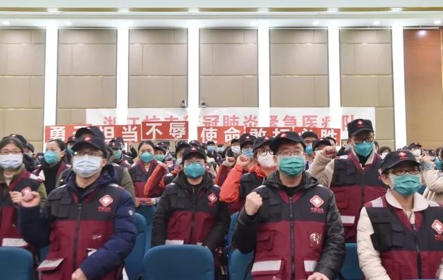 一大早, 杭州市中医院行政楼会议室内举办了一场培训和出征仪式,全体院领导一起送别今天下午将动身前往武汉,深入疫区支援的两位白衣“战士”。