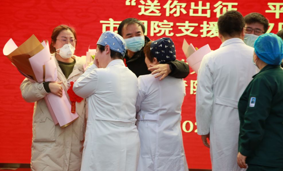 在市四院出征仪式现场,重症医学科主任冯伟笑着说:你们不用担心,后方的你们可能比我们还危险,不用担心哈。这句让现场的气氛不再那么紧张。