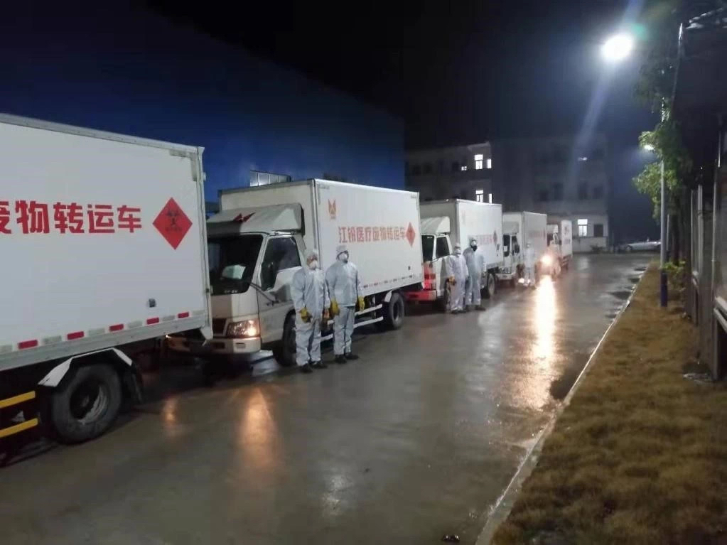 截至目前,各项目公司医废处置现场、收运车辆调度、医废处置设备和消毒设备使用、医废收运及处置人员出勤均保持正常运转状态。各项目公司已于1月23日下班前全部制订《突发公共卫生事件专项应急预案》,从事故类型和危险程度分析、应急原则、应急组织和机构、信息联络、发生疫情时医疗废弃物处理的应急预案等做了统一部署,并加强与属地防控指挥部、应急办沟通,最大限度的解决防控物资调剂及收运通行等问题,确保各项目公司服务区域内各医疗机构产生的医疗废弃物妥善处置,保障干部职工及当地公众卫生安全。