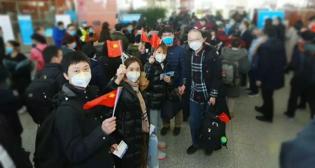 1月25日晚6点半,5名队员到达湖北武汉,她们默默地在心里为武汉加油。
