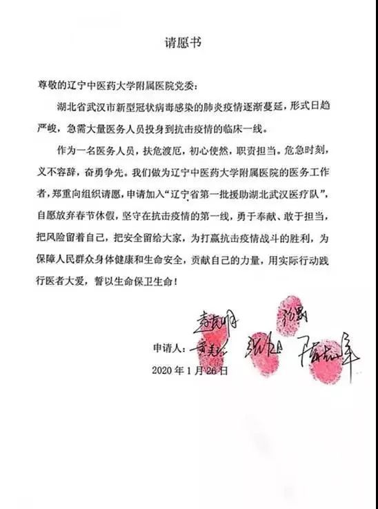 1月25日12时,辽宁中医药大学附属医院接到辽宁省卫生健康委关于组派医疗队援助湖北应对新型冠状病毒感染肺炎疫情的通知。疫情就是命令!接到通知后,医院党委紧急部署,众多医护人员纷纷请战。