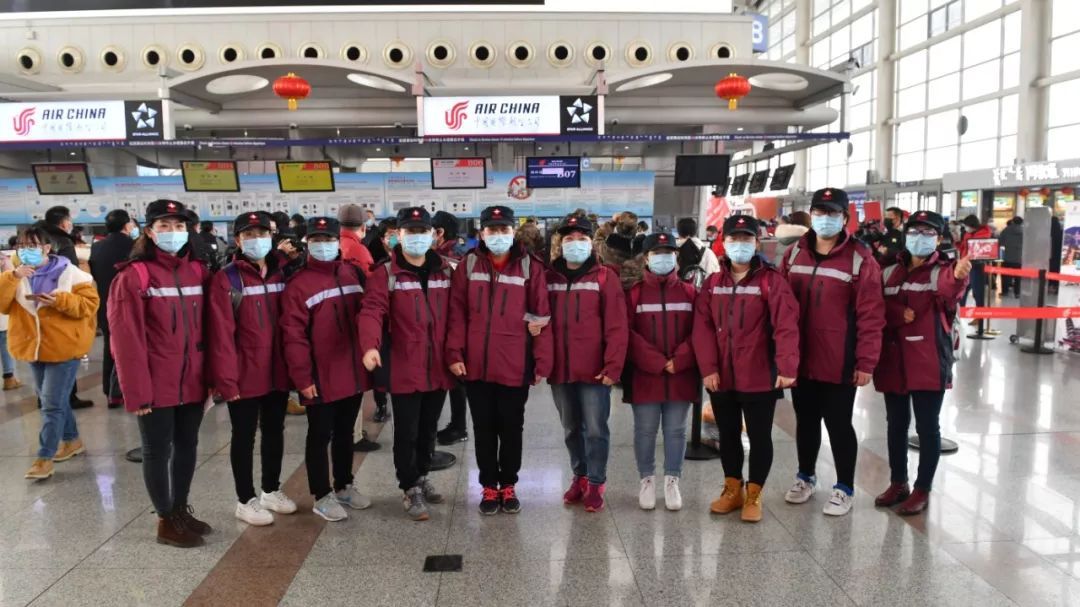 ▲1月28日,由全自治区抽调的139名医务人员及2名带队工作人员组成的内蒙古自治区赴湖北首批医疗队正式启程。这是医疗队一些队员在呼和浩特白塔国际机场大厅合影。新华社发(贝赫 摄)