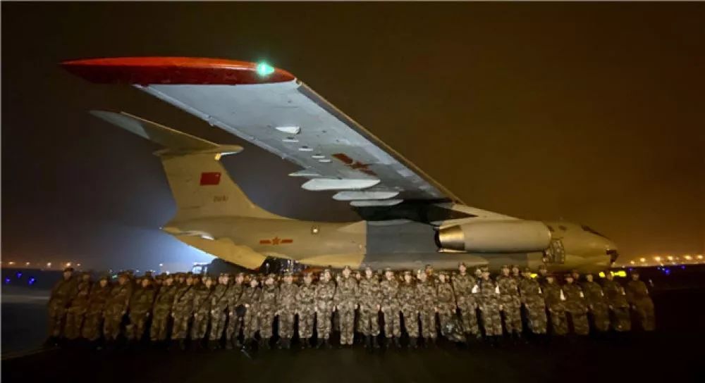 ▲1月24日晚,由陆军军医大学抽调精干医务人员组建的医疗队在重庆江北国际机场停机坪集结,准备连夜驰援武汉。 新华社发