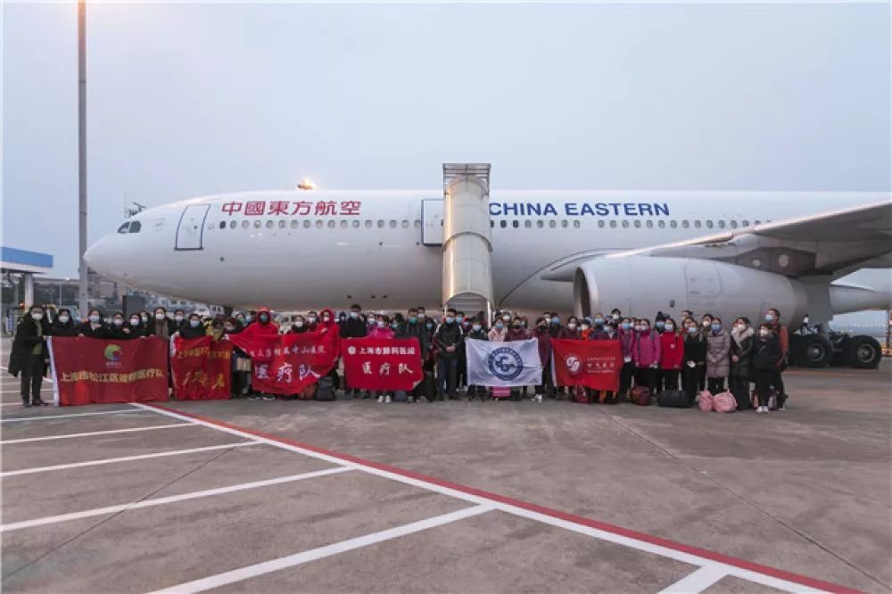 1月28日当天,来自新疆、甘肃省及广东、上海市第二批等21支医疗队,共计2287名医务人员紧急驰援湖北。