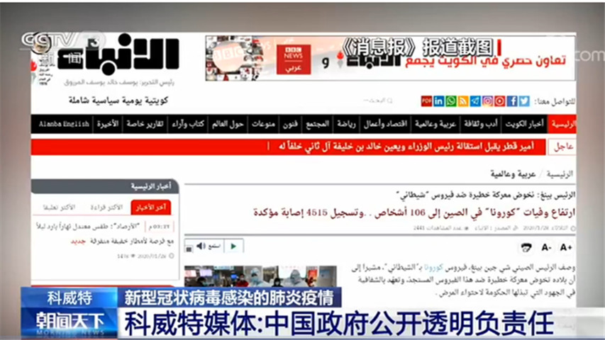 科威特主流媒体也持续关注疫情进展。科威特《消息报》在报道中称,中国政府一直采取公开、透明和负责任的态度,以尽快公布相关消息。报道中同时提到,中国已拨出专门款项用于公共卫生和防疫工作,并将资金分配给农村地区用于疫情防治工作。