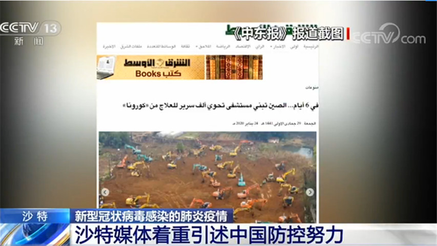 沙特财团出资、总部设在伦敦的《中东报》引述中央广播电视总台报道介绍说,中国国家主席习近平表示,中国正在与疫情作坚决斗争,并保证政府将为遏制疫情做出努力,同时相关信息也将保持透明。《中东报》还专门刊文介绍中国武汉专门建设医院用于疫情防控,对中国在基建方面的速度和效率表示赞赏。