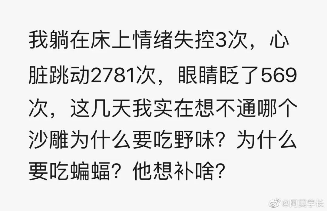 1月30日下午,#这两天我最想不通的事#成为微博热搜话题,话题内的热门微博中,网友吐槽爱吃“野味”的人。