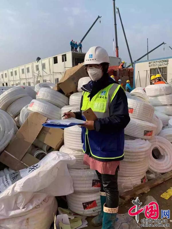 在得知公司要负责承建火神山项目后,汤丽华第一时间主动向公司请缨支援项目建设。她说:“作为一名资深材料员,我知道在紧急项目中该如何调配资源”。除夕当天,她来到项目现场开始负责物资进场清点及转运调度工作,连续6个小时滴水未进往返于风水电各类安装材料堆场,挺着喊哑了的嗓子为物资转运开辟出了一条条“生命动线”。