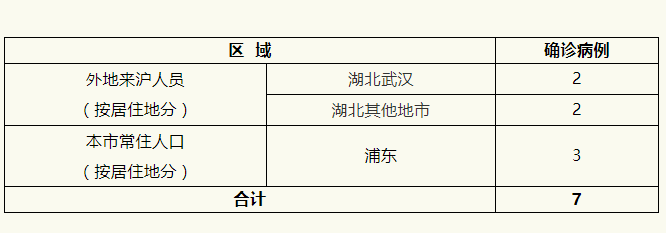 新京报快讯 据上海市卫生健康委员会官方微信消息,2020年1月31日0—12时,上海市排除新型冠状病毒感染的肺炎疑似病例20例;新增治愈出院4例;新增确诊病例7例,其中外地来沪人员4例,上海市常住人口3例。具体情况如下: