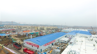 昨日,火神山医院正在进行最后的建设收尾工作。通讯员 李芊 摄