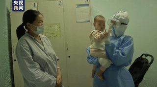 2月3日下午,交接班完成后,护士长王颖第一时间来到病房跟琦琦的妈妈沟通第二天需要给孩子准备的辅食。琦琦已经9个月大了,除了母乳,现在正是开始吃辅食的时候了。小家伙似乎已经适应了眼前“全副武装”的阿姨,甚至愿意主动伸手让她抱一抱。