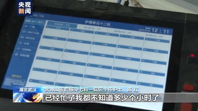 火神山医院感染七科一病区主任护士 陈红:每天都在病房查房,时时刻刻了解病人的需求,他需要我们做什么,包括生活上的,治疗上的要求,我基本都是掌握信息的。