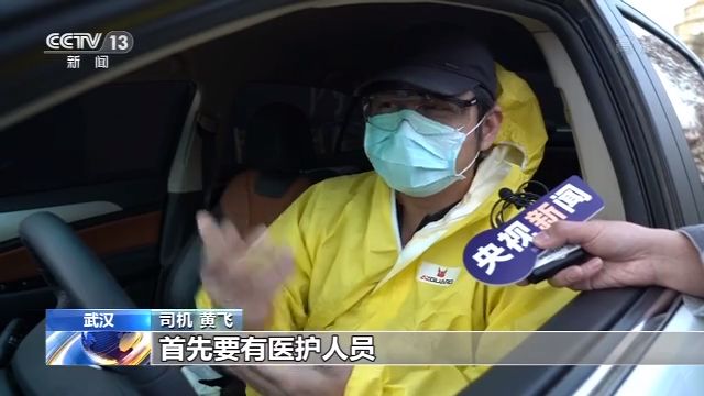司机 黄飞:我作为武汉人,自己肯定是要对武汉做出个人的一点贡献了。希望我们的城市赶快好起来,但城市怎么能好起来?首先要有医护人员,他们把患者治好了,我们才能好起来。