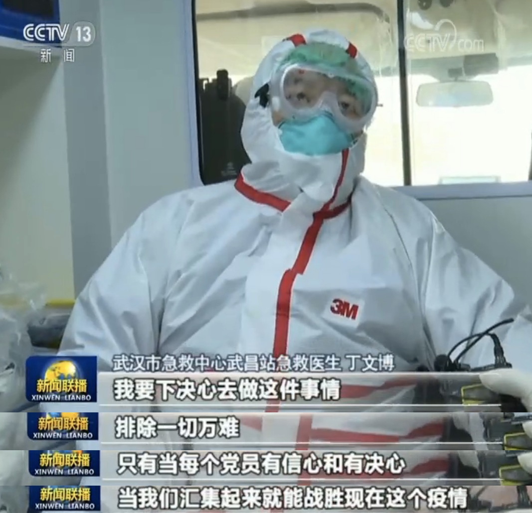 3日早上,急救医生丁文博接诊了一位71岁的患者,老伴儿已确诊新型冠状病毒感染的肺炎,她又突然昏厥并伴有发热,丁文博一面安抚家属,一面迅速将老婆婆抬上救护车送到医院。