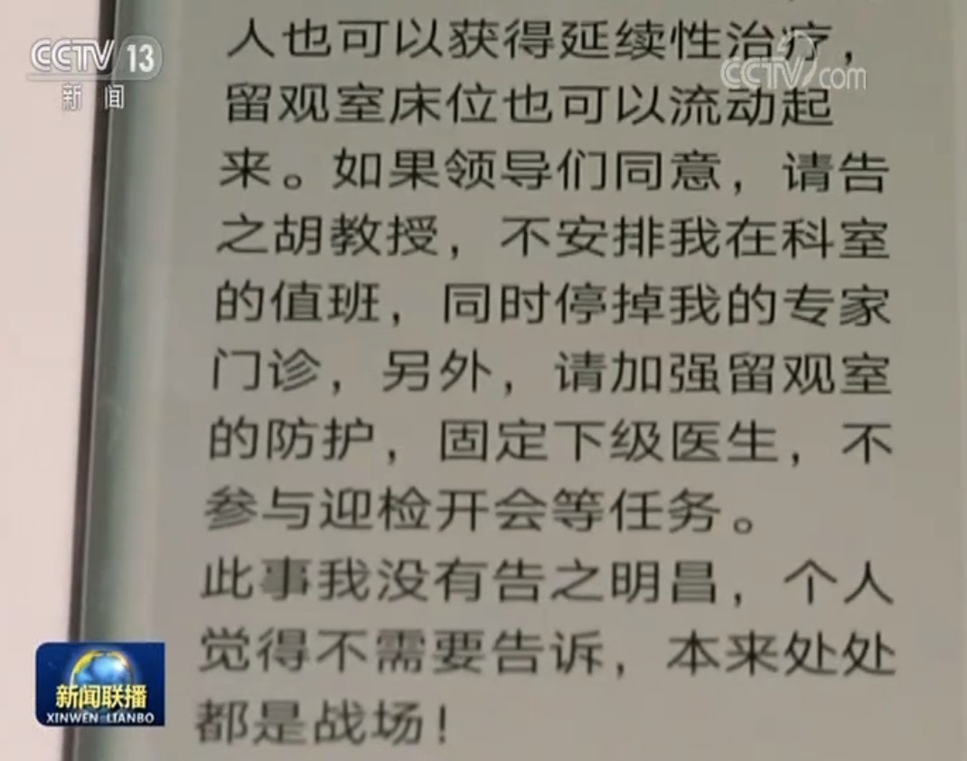 “此事我没有告知明昌。个人觉得不需要告诉,本来处处都是战场!”这是武汉大学人民医院呼吸与危重症医学II科党支部书记张旃的请战书,明昌是她的丈夫。作为一名曾经抗击过非典的呼吸科医生,她第一时间向医院请战。疫情发生以来,武汉大学人民医院7000多名员工全部放弃春节休假,全情投入到抗击疫情一线。随着1月30日,该院东院区改造为新型冠状病毒感染的肺炎患者集中收治点,他们的医疗救治任务更加繁重。而从1月18日至今,张旃始终在急诊留观室坚守。