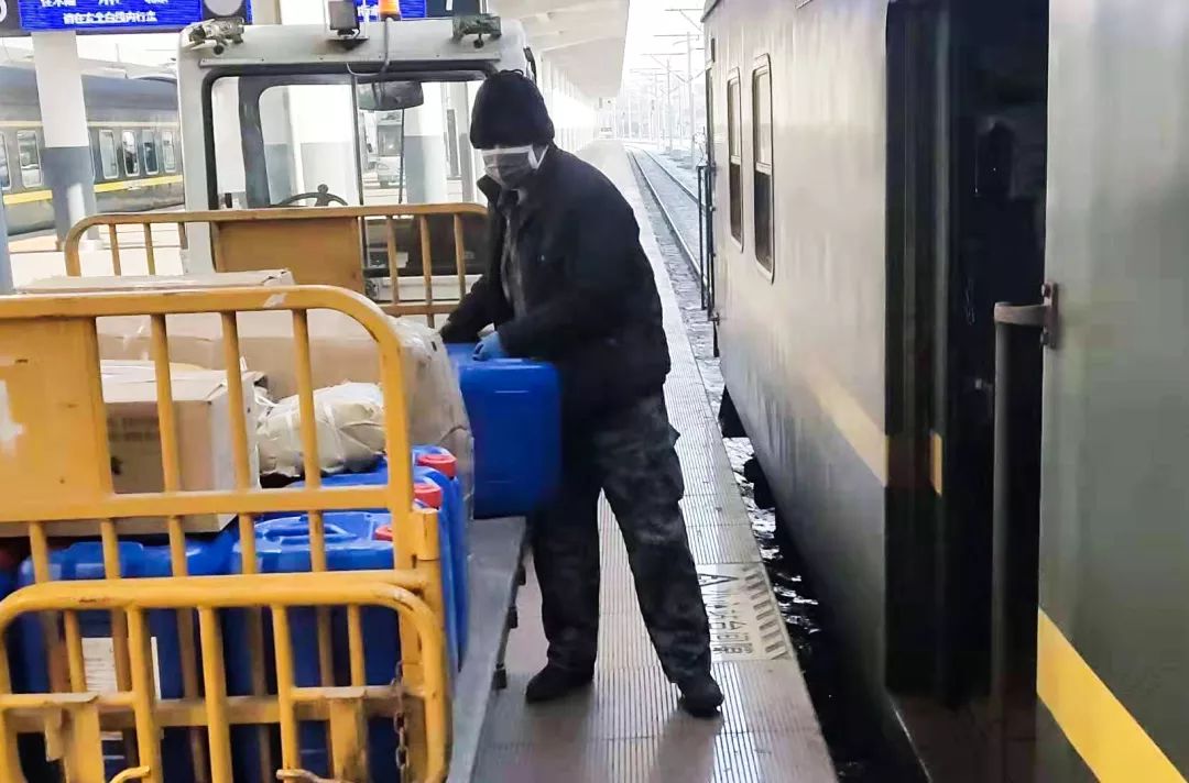 得知详情后,值班员尤冰立即报告车间,开启防疫物资绿色通道,按照“手续从简、重点保证、从速发运”的原则,打电话临时协调6272次列车补装事项,抽调班组两名共产党员,三人一起拣货装载。