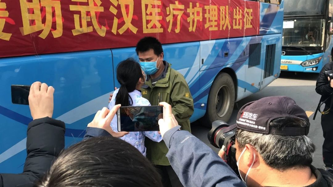 “一路平安,好好的!你在那边好好工作,家里一切有我们,平平安安地回来!”双小燕的丈夫深情地看着妻子,紧紧握着她的手说道。据了解,双小燕护士是位准新娘,本计划在今年二月份完成婚礼,因为疫情,她果断将婚礼取消,并主动报名参与援鄂计划。