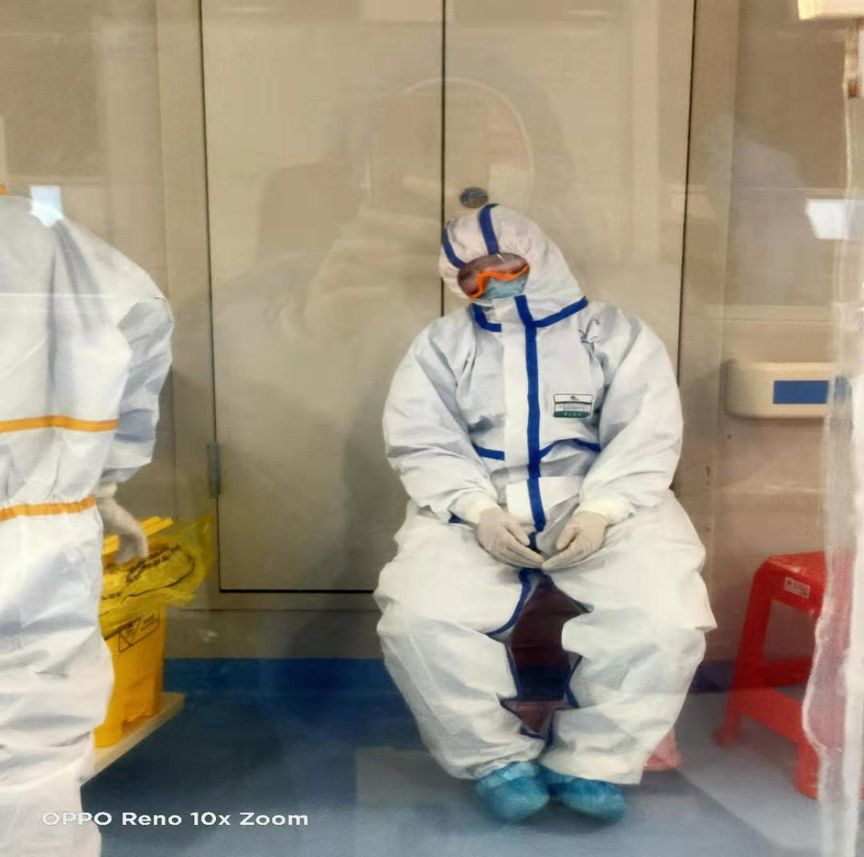 稍事休息,紧接着上16:00-20:00的排班,我要同一起支援的老师在组长的指导下管理5名患者,在厚厚的防护服下,一切细小的动作都变得如此困难,四个小时没有停歇,尿不湿似乎都是多余的,汗水早已经湿透衣服。