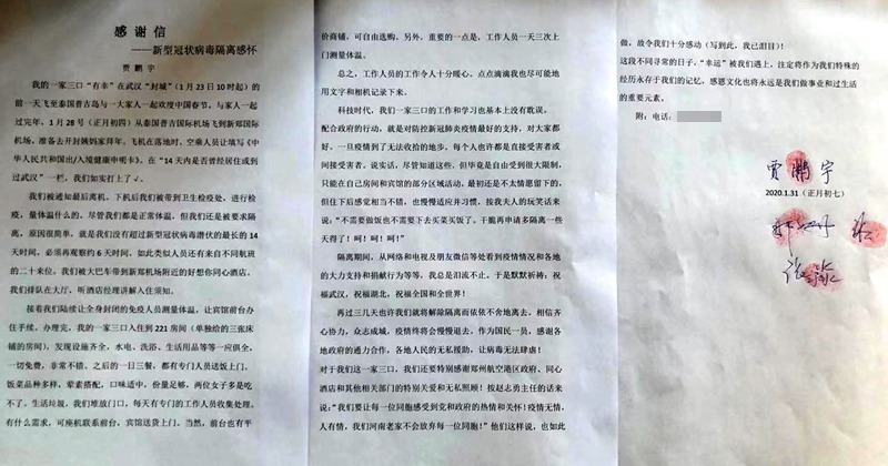 1月26日,从伦敦学术交流回国的姚文龙,在航空港实验区接受了7天隔离观察,离开之际,他专门写信对航空港实验区的做法予以高度评价。
