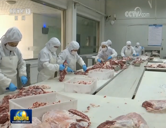 这里是宁夏盐池县一家滩羊肉加工车间,在做好防控措施的前提下,工人们正在紧张有序地切割、包装滩羊产品。