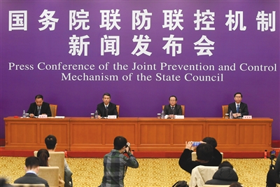 昨日,国务院联防联控机制新闻发布会,介绍救治经费保障、医务人员待遇落实工作情况。新京报记者 吴宁 摄