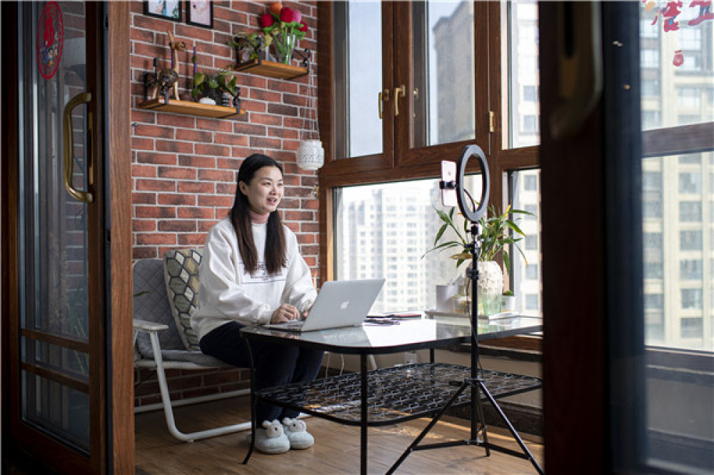 心理咨询师王怿在武汉的家中进行公益直播,对观众进行心理疏导(2月22日摄)。新华社记者 熊琦 摄