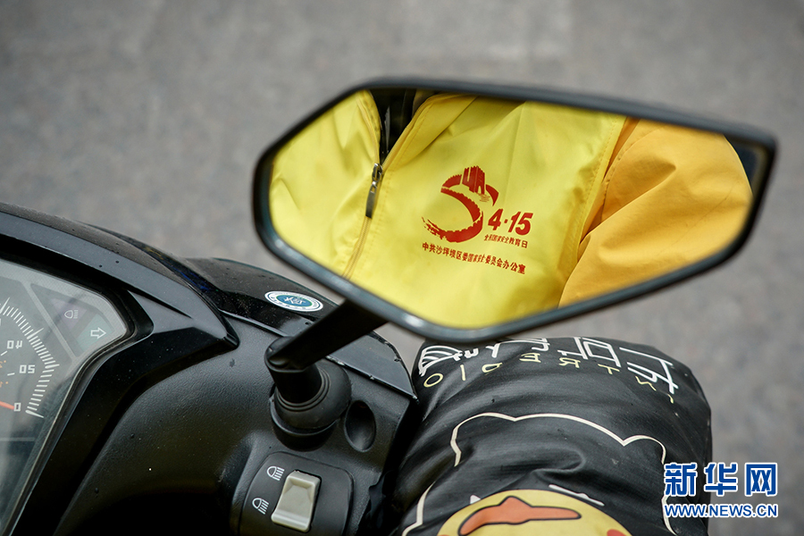 王淞骑着摩托车出发了,前往配送的小区距离不远,熟悉道路情况的他几分钟就可以驾车到达。“我是国家安全宣传使者”活动从4月13日起持续三天,预计将把上万份宣传品送到商家和市民手中。新华网 韩梦霖 摄