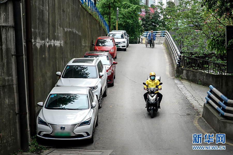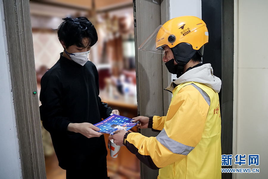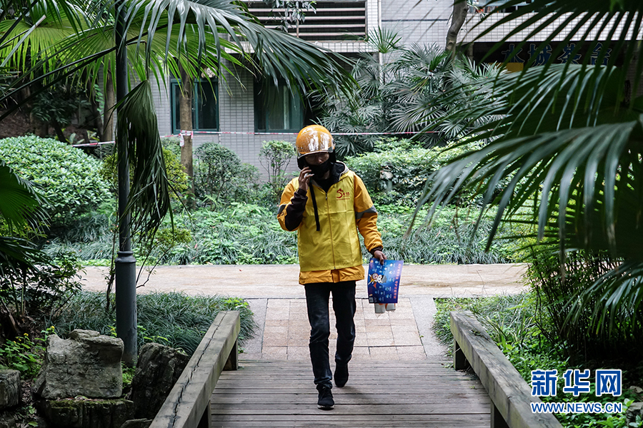 到达送餐的小区后,王淞迅速跟对方取得联系,上门进行配送。据沙坪坝区委政法委相关负责人介绍,通过快递和外卖配送业务来发送宣传制品,是为了让宣传教育活动由人员聚集到分散入户,变集中宣传为流动宣传,同时不降低疫情期间群众参与度。新华网 韩梦霖 摄