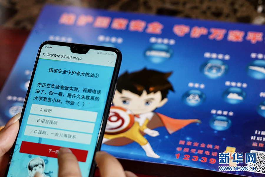 这一游戏程序把“国家安全进网络”和“国家安全进课堂”相结合,测试内容集知识性和趣味性于一体,把国家安全大政方针与人民群众生产生活可能遇见的风险情况有机结合,以号召广大人民群众积极参与到国家安全中来,把国家安全群众性教育落实落地。新华网 韩梦霖 摄
