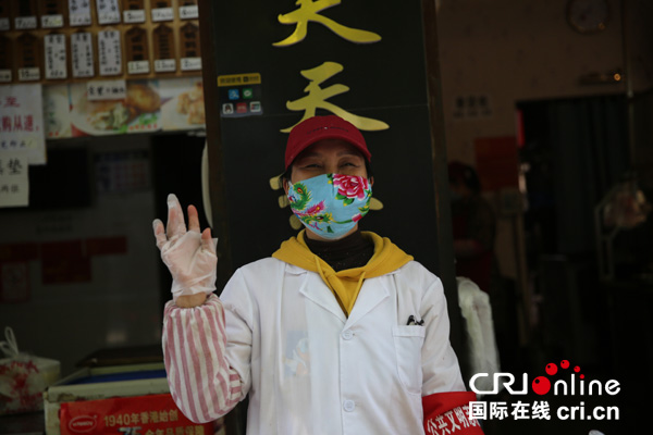 赵友芝说:“我们比平时起得早些,有些消毒工作要安排,要做卫生,全面消毒、量体温等等,防护工作要做好,所以要起早些,比没有疫情(时)要提前一个小时到店。”