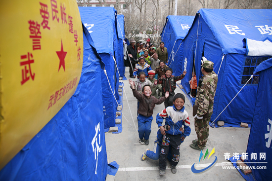 震后不到一周时间,支队援建的“爱民帐篷学校”就开学了。琅琅的读书声、稚嫩的童声温暖着所有人。王国营担任孩子们的老师,除了上文化课,还适时对孩子们进行心理疏导,并提供生活帮助。