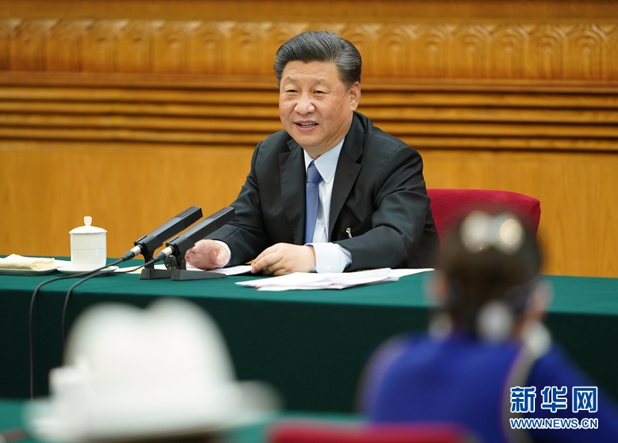 5月22日,中共中央总书记、国家主席、中央军委主席习近平参加十三届全国人大三次会议内蒙古代表团的审议。 新华社记者 黄敬文 摄
