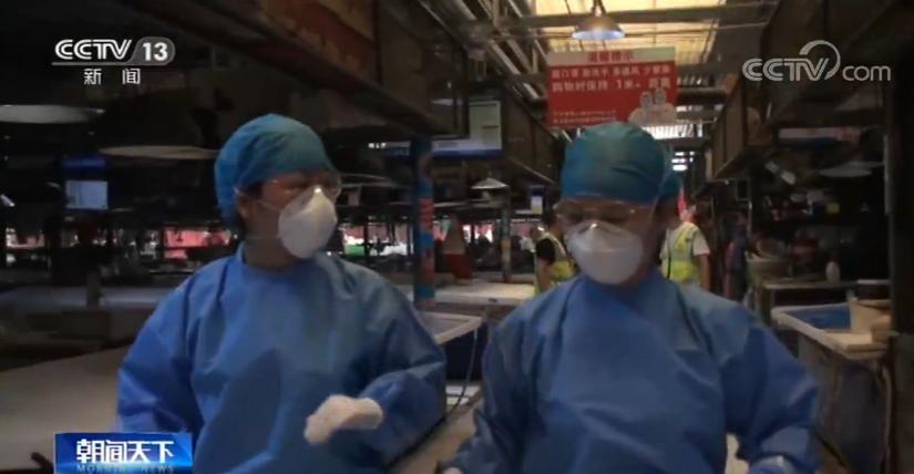 张芳蕾:一般穿防护服都会湿透,现在相对来说这已经属于一个轻简版的了,因为这里的风险等级相对来说较低,只要穿隔离衣戴着手套和口罩就可以了。